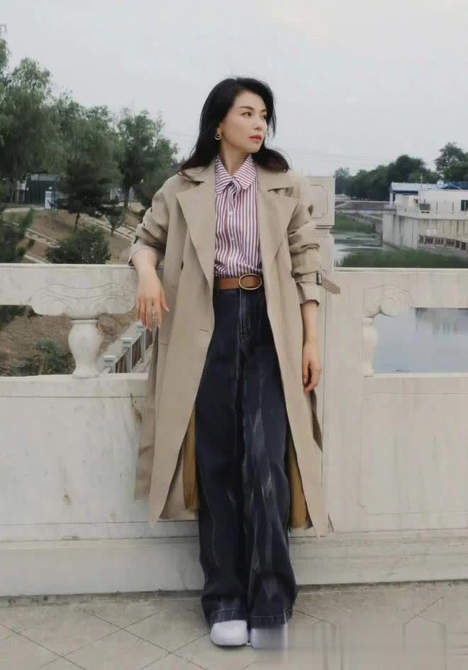 身穿条纹衬衫、牛仔裤,外披风衣,倚栏远眺,神色平静,这便是独处时最为放松的模样。此刻,能抛却日常压力与疲惫,尽情享受属于自己的宁静与自由。