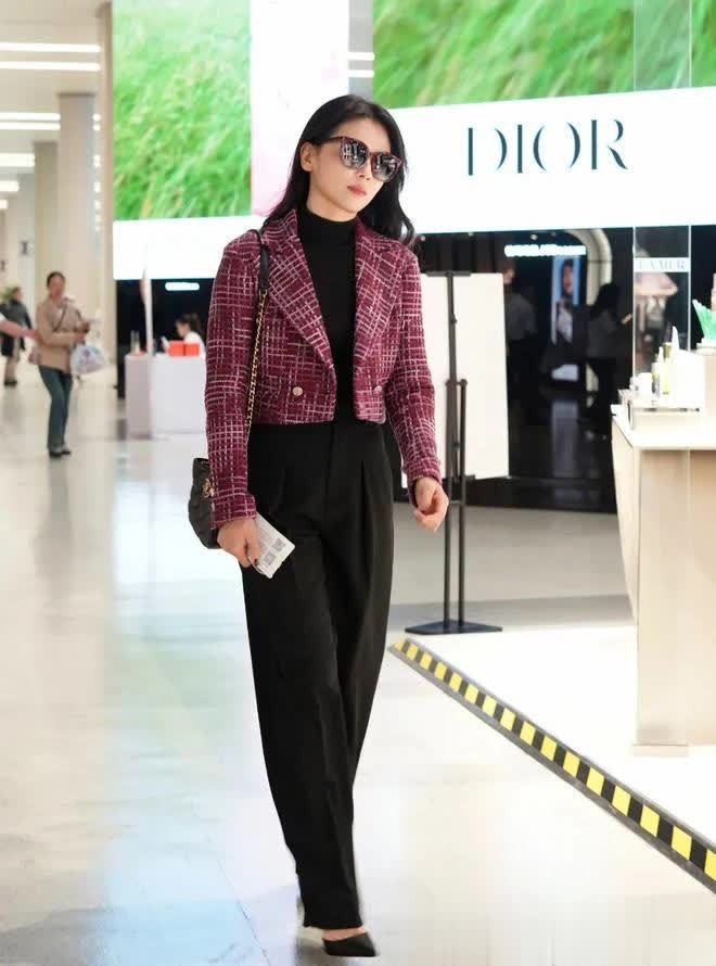 日常生活里,低调而精致的装扮彰显了对生活品质的追求。即便不在荧幕前,也精心打扮,一件黑色打底衫搭配黑色西装裤,外搭短款小香风外套,尽显对生活细节的精致考究。