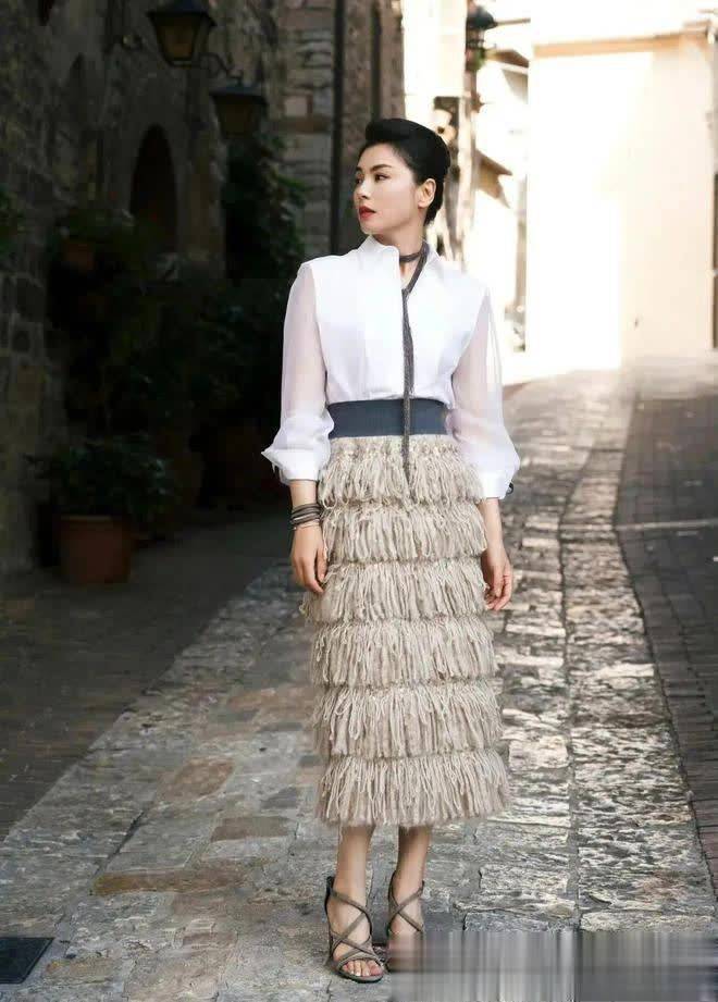 当刘涛身着一身洁白时,宛如白月光中的佳人。白色上衣的镂空设计,为其增添了几分慵懒与女性韵味;白色缎面长裙的选用,更是将繁简美学完美融合,达成视觉上的平衡与和谐,尽显穿搭的精致与内敛。